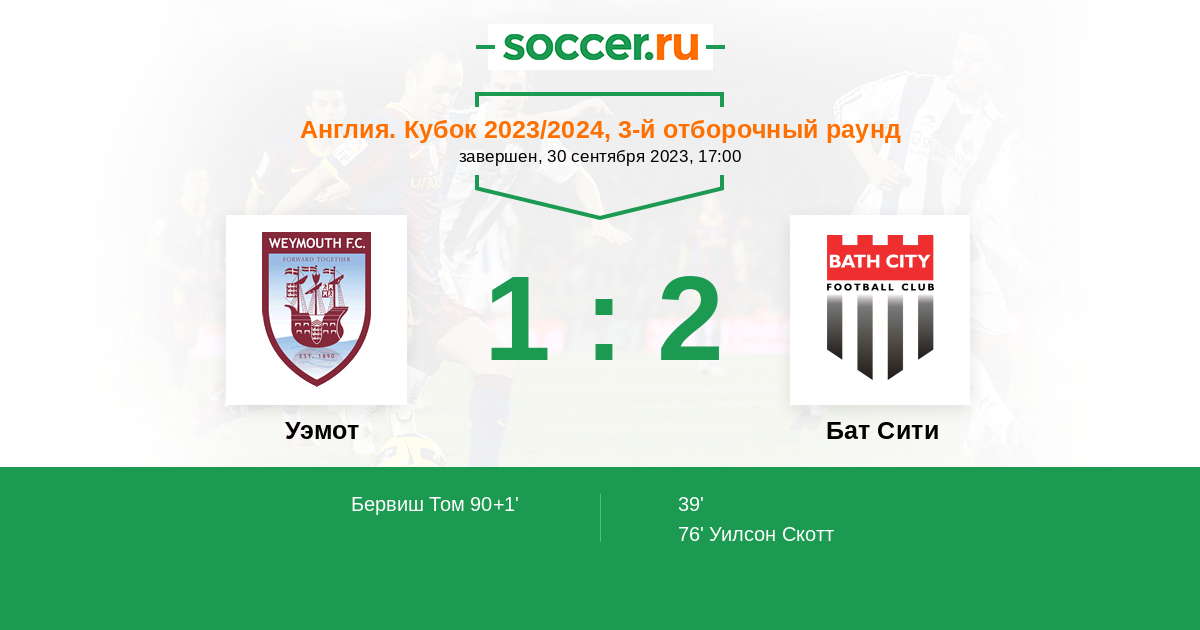 Уэмот - Бат Сити: обзор матча 30 сентября 2023