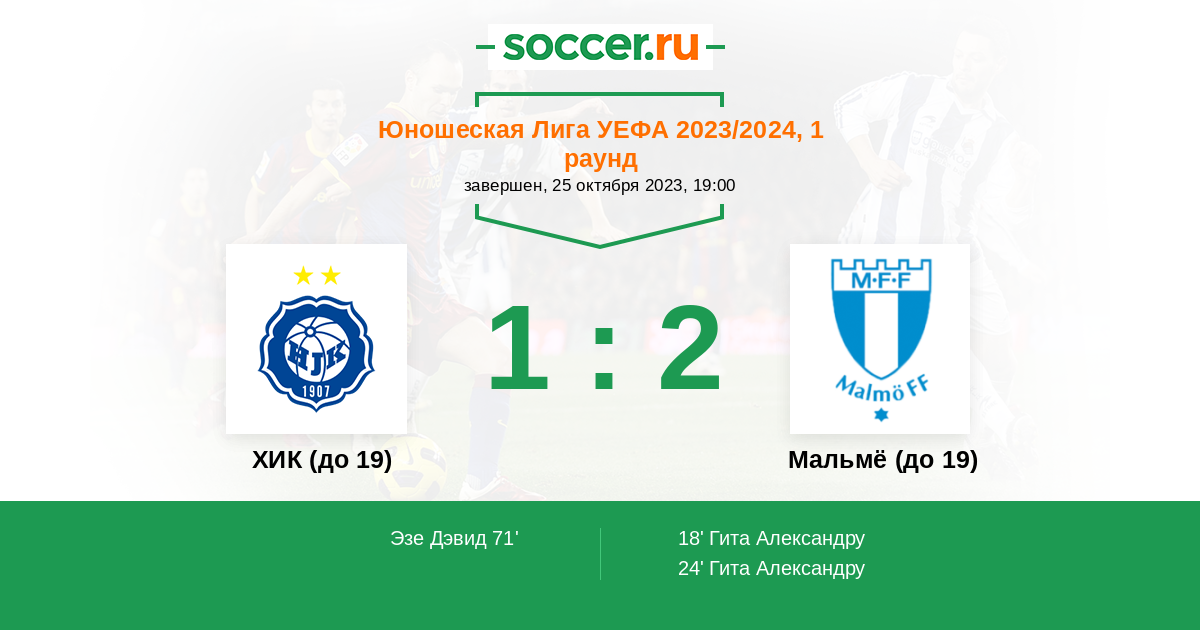 ХИК (до 19) - Мальмё (до 19): обзор матча 25 октября 2023