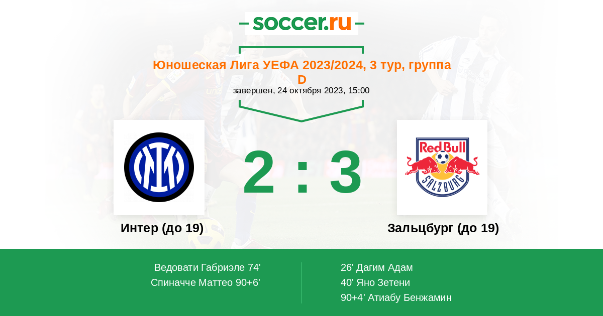 Интер (до 19) - Зальцбург (до 19): обзор матча 24 октября 2023