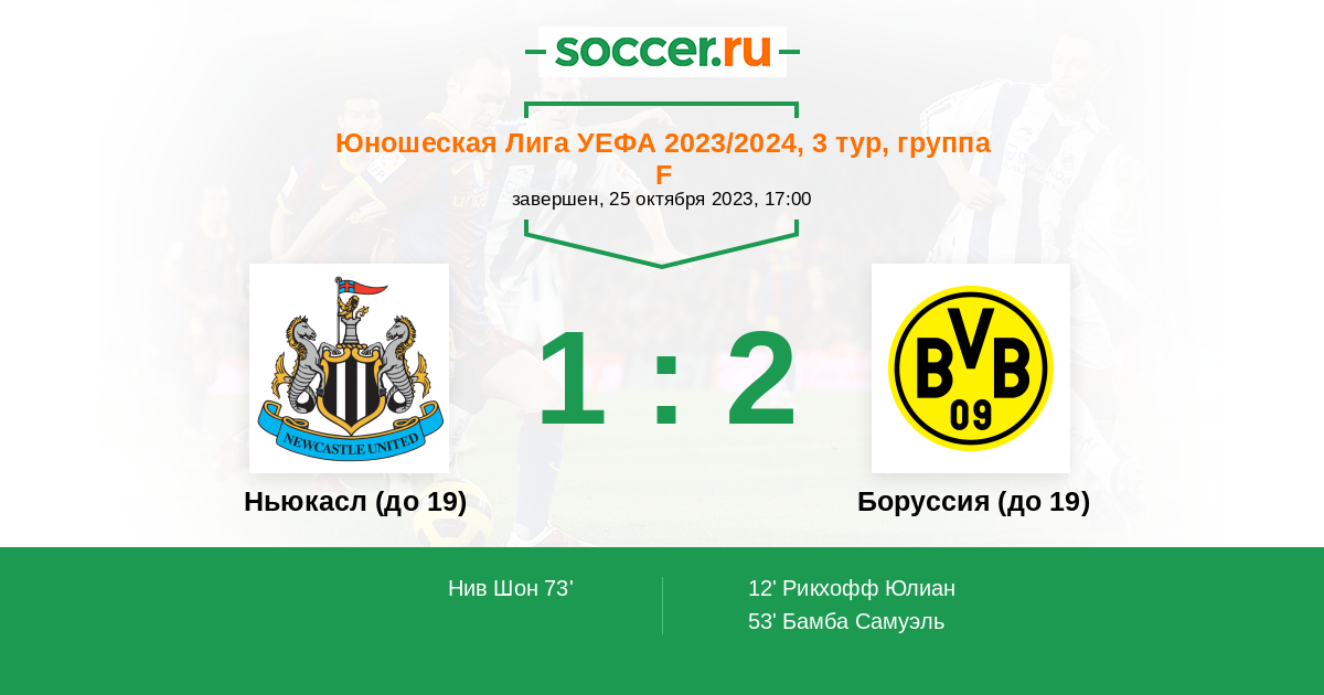 Ньюкасл (до 19) - Боруссия (до 19): обзор матча 25 октября 2023