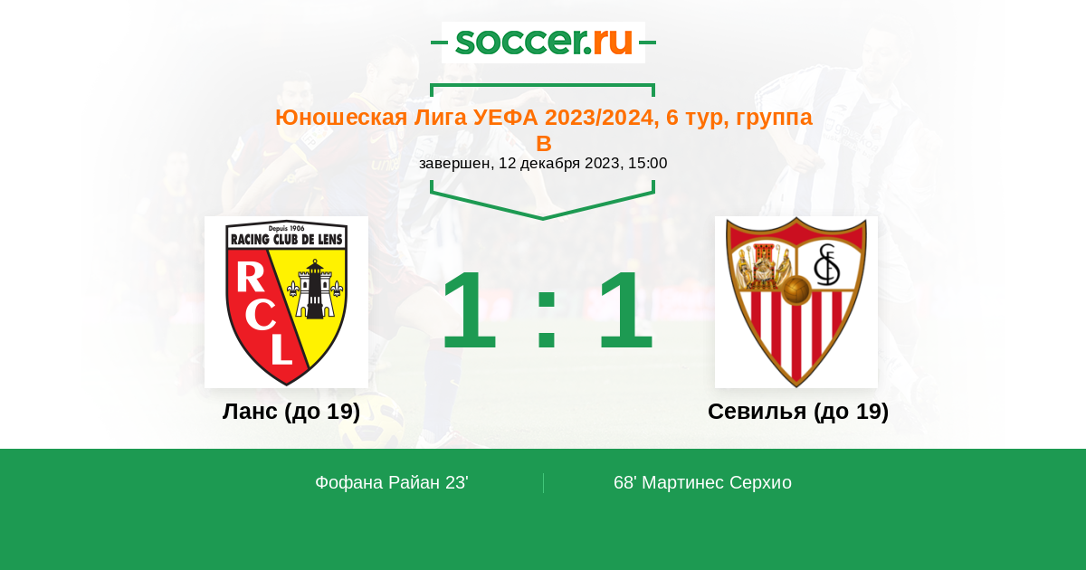 Ланс (до 19) - Севилья (до 19): обзор матча 12 декабря 2023