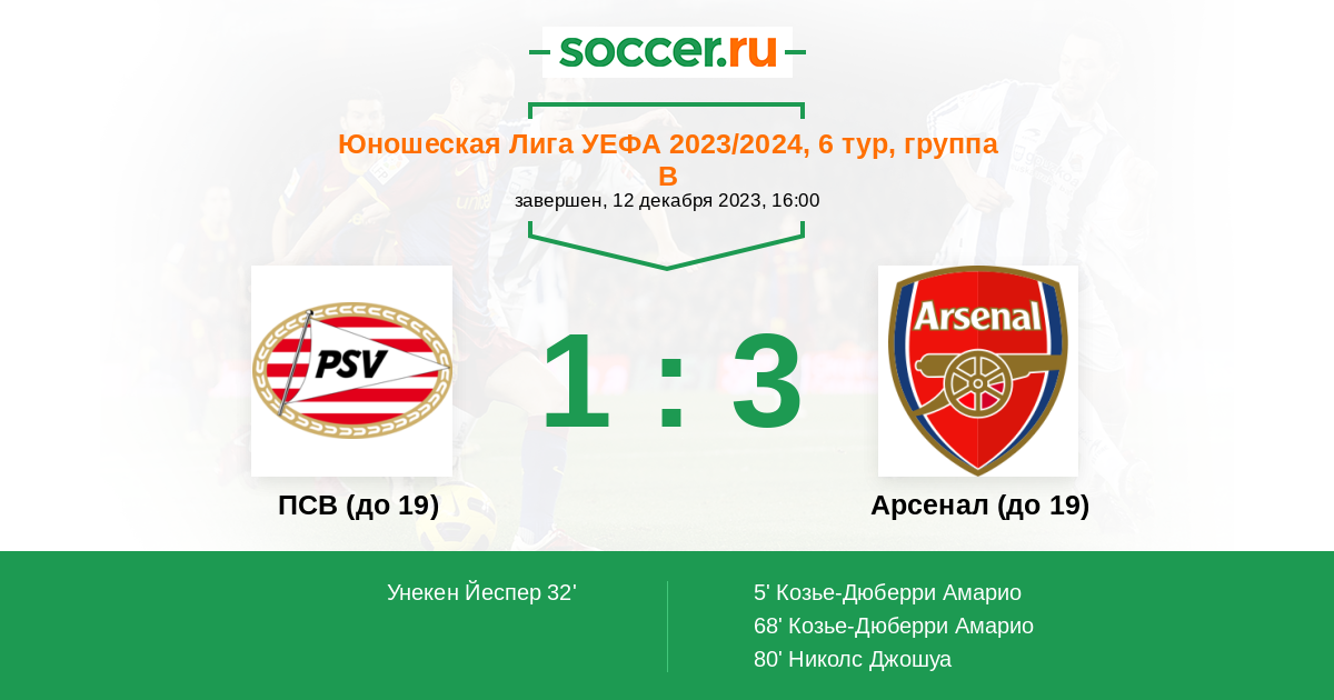 ПСВ (до 19) - Арсенал (до 19): обзор матча 12 декабря 2023