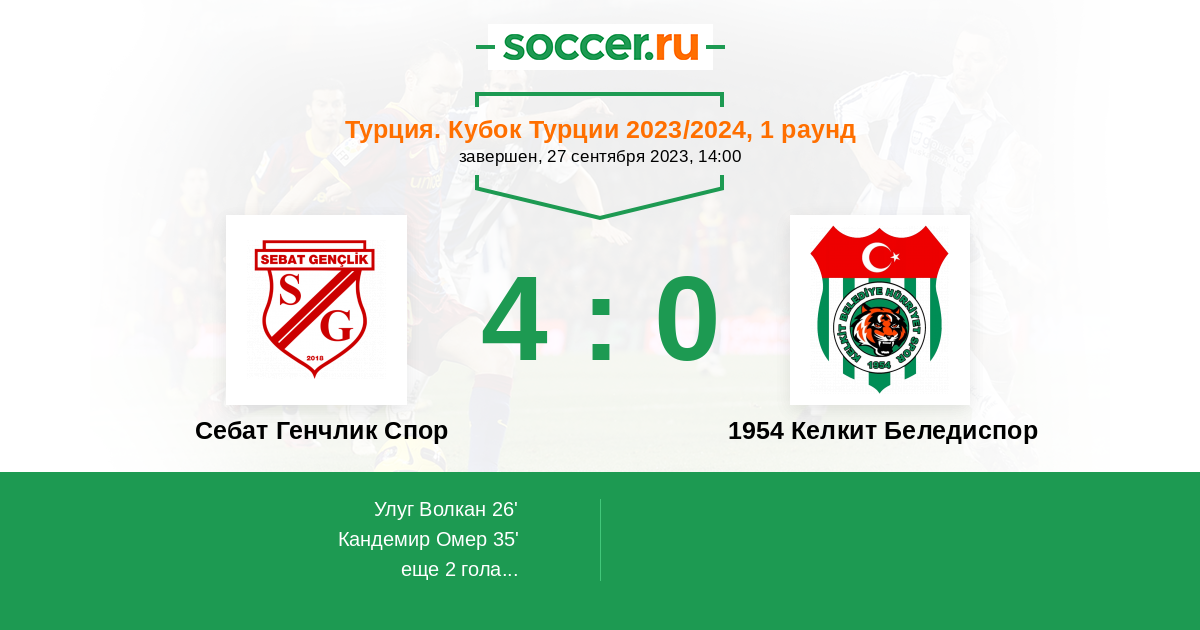 Себат Генчлик Спор - 1954 Келкит Беледиспор: обзор матча 27 сентября 2023