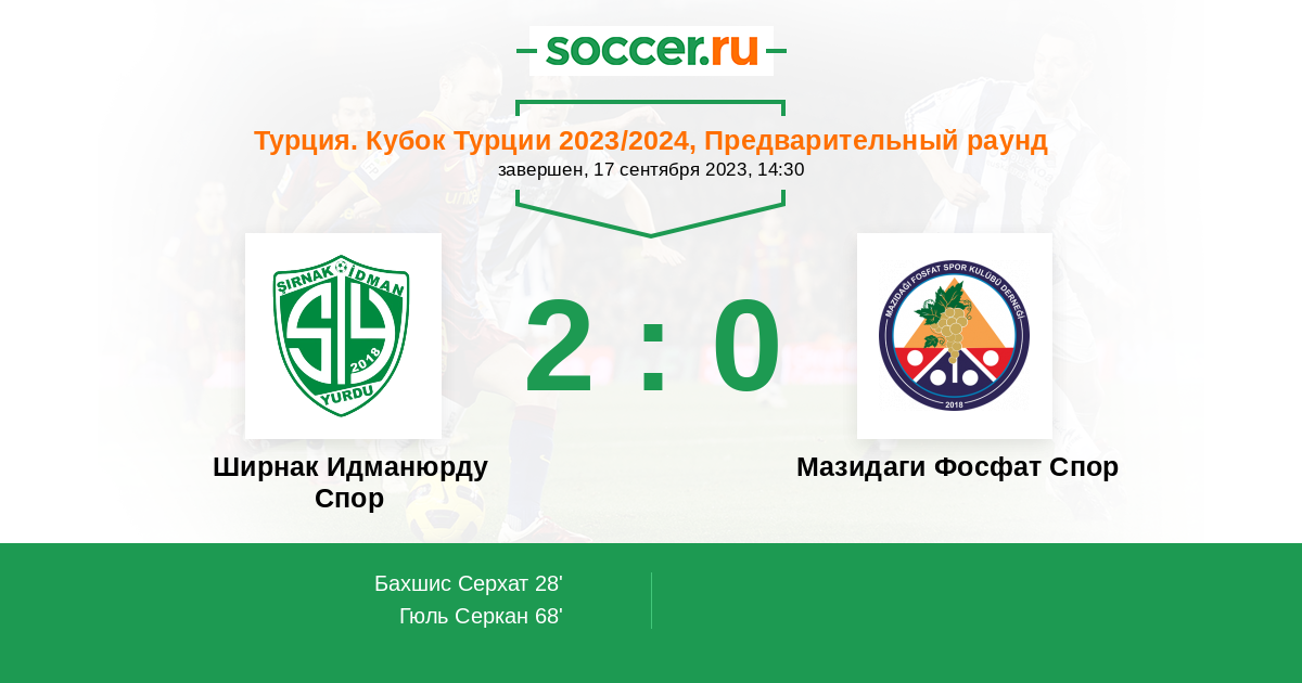 Ширнак Идманюрду Спор - Мазидаги Фосфат Спор: обзор матча 17 сентября 2023