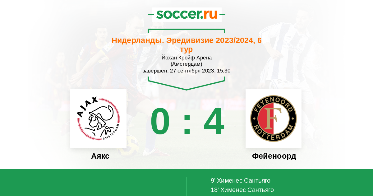 Аякс - Фейеноорд: обзор матча 27 сентября 2023