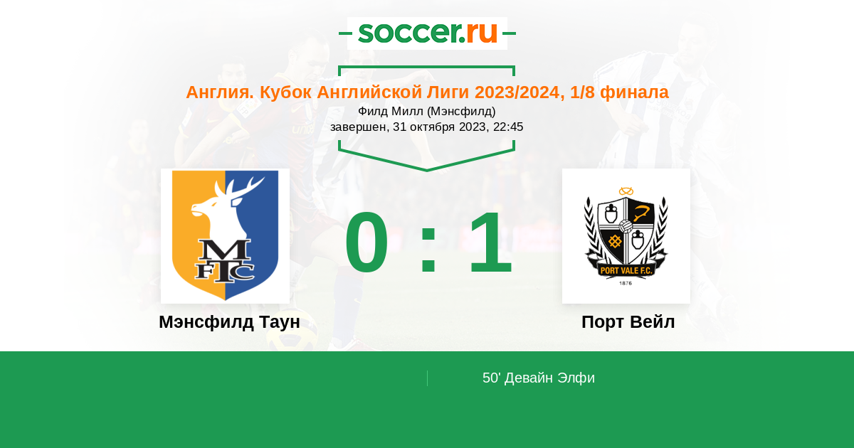 Мэнсфилд Таун - Порт Вейл: обзор матча 31 октября 2023