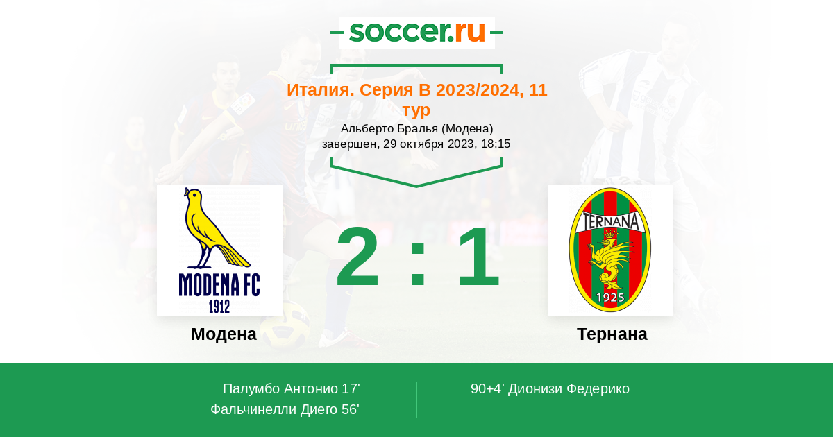 Модена - Тернана: обзор матча 29 октября 2023