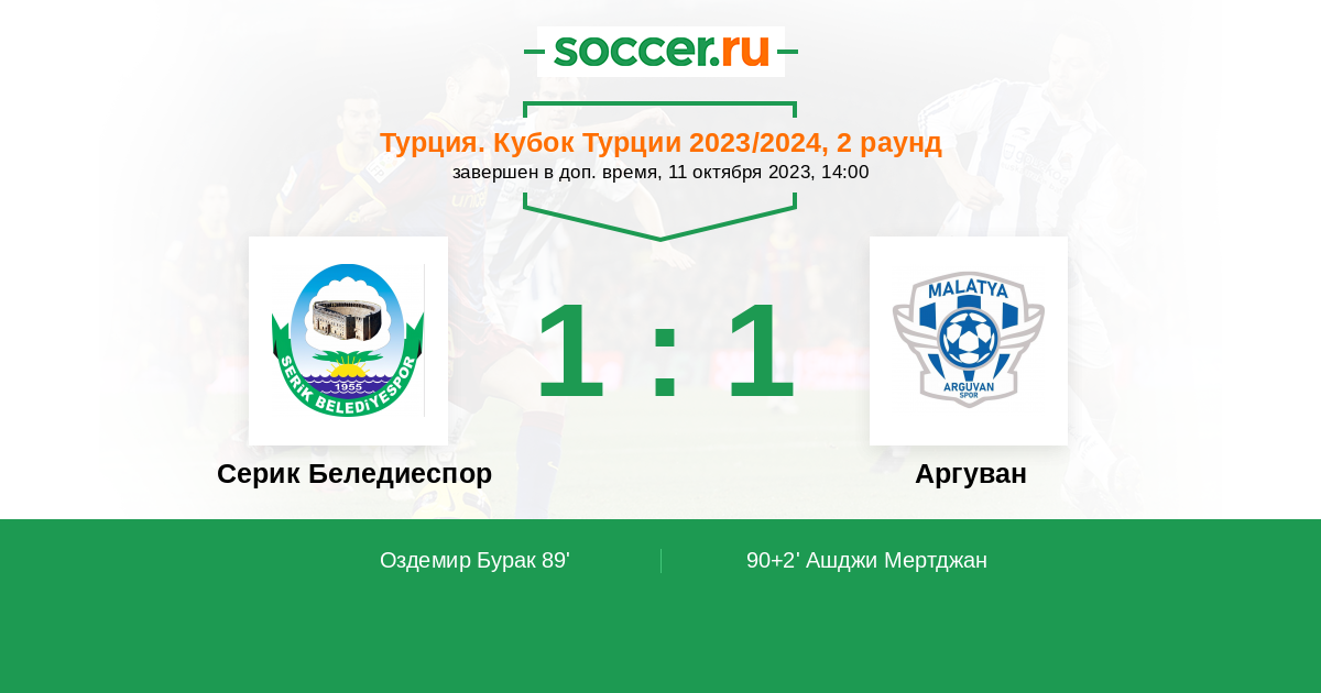 Серик Беледиеспор - Аргуван: обзор матча 11 октября 2023