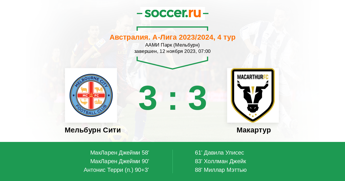 Мельбурн Сити - Макартур: обзор матча 12 ноября 2023
