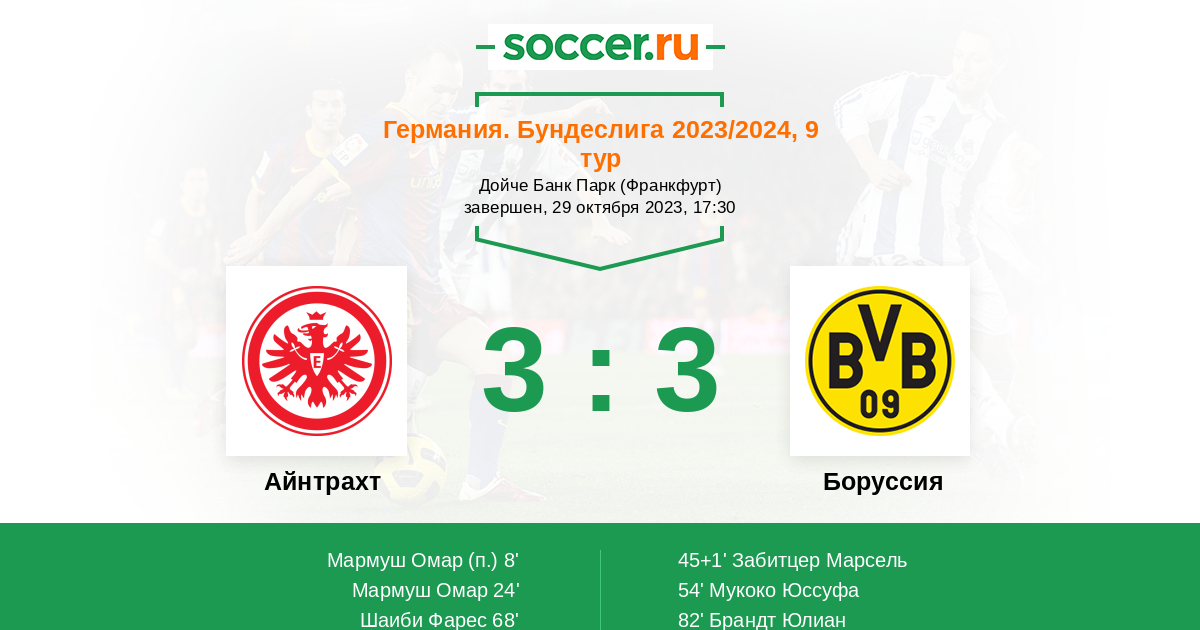 Айнтрахт - Боруссия: обзор матча 29 октября 2023