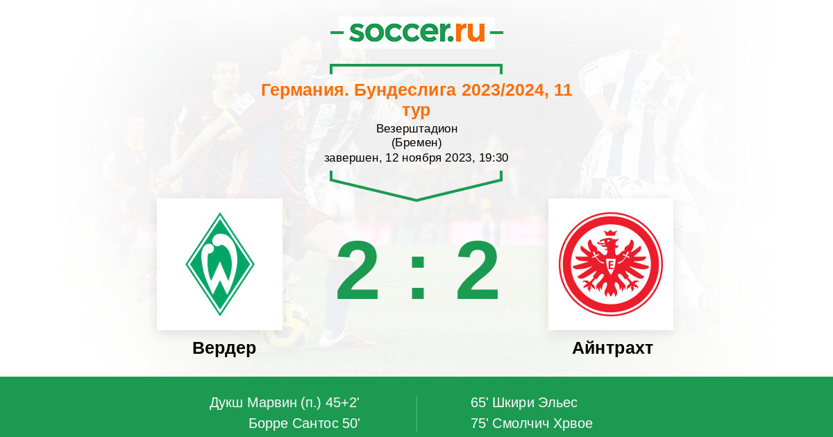 Вердер - Айнтрахт: обзор матча 12 ноября 2023