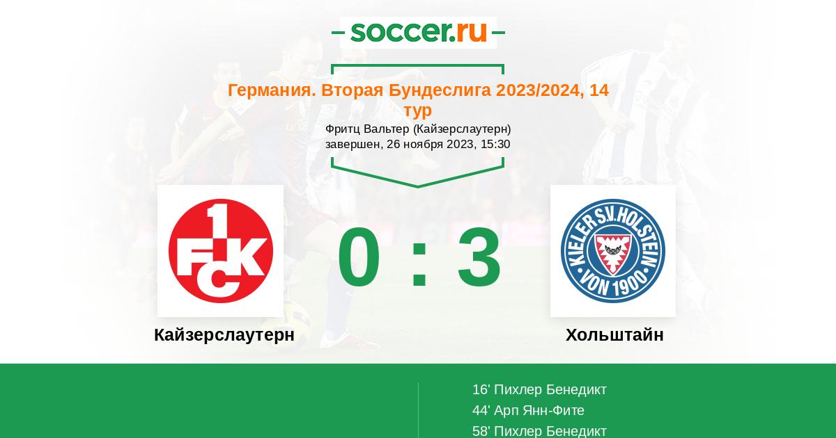 Кайзерслаутерн - Хольштайн: обзор матча 26 ноября 2023