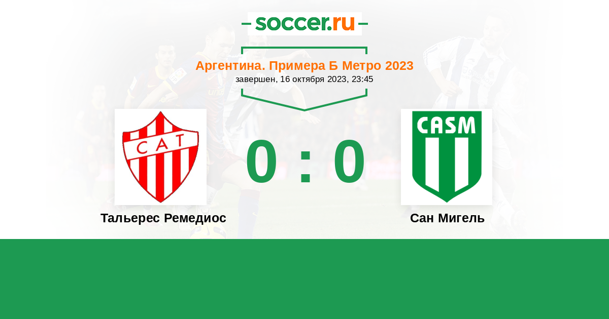 Тальерес Ремедиос - Сан Мигель: обзор матча 16 октября 2023