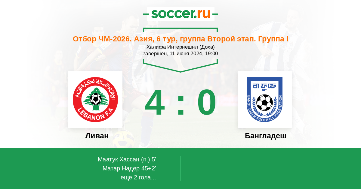 Ливан - Бангладеш: обзор матча 11 июня 2024