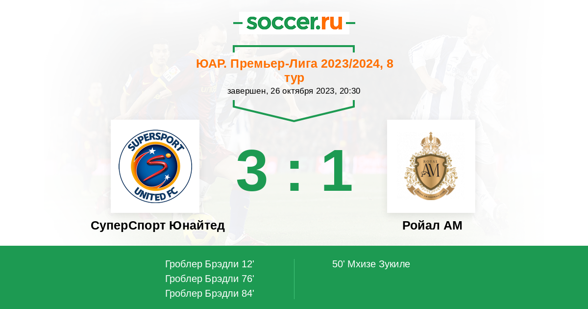 СуперСпорт Юнайтед - Ройал АМ: обзор матча 26 октября 2023