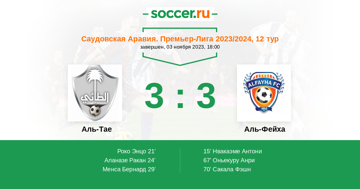 Аль-Тае - Аль-Фейха: обзор матча 3 ноября 2023