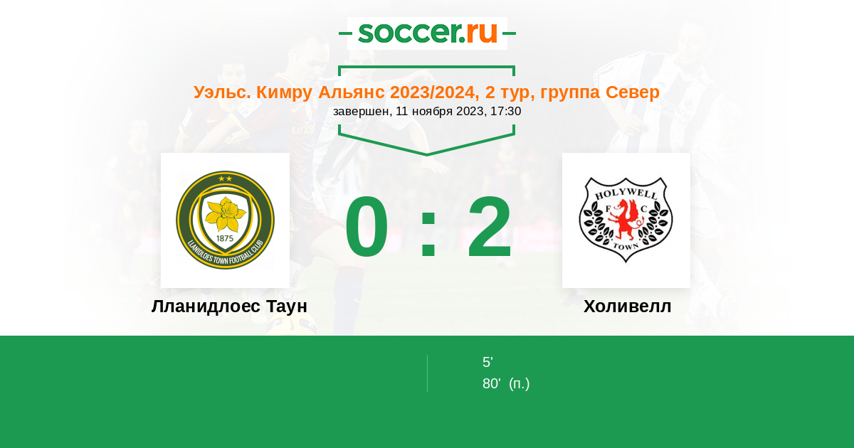 Лланидлоес Таун - Холивелл: обзор матча 11 ноября 2023