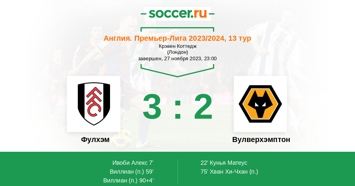Фулхэм - Вулверхэмптон: обзор матча 27 ноября 2023