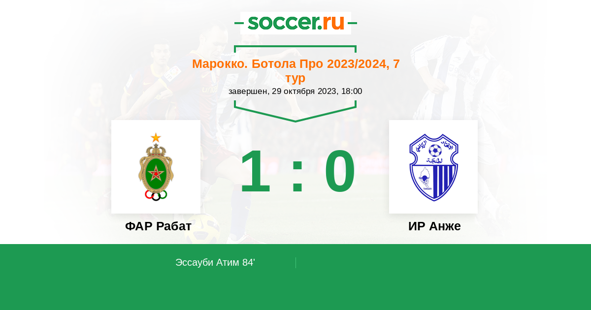 ФАР Рабат - ИР Анже: обзор матча 29 октября 2023