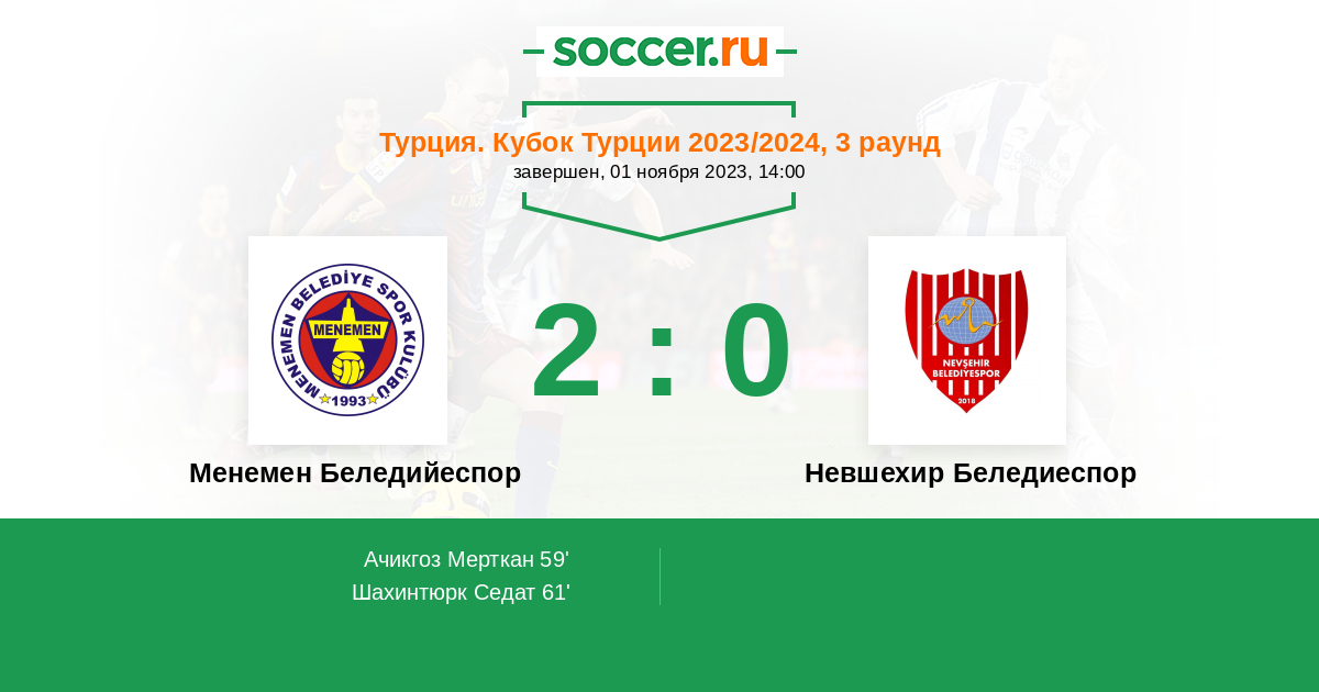 Менемен Беледийеспор - Невшехир Беледиеспор: обзор матча 1 ноября 2023