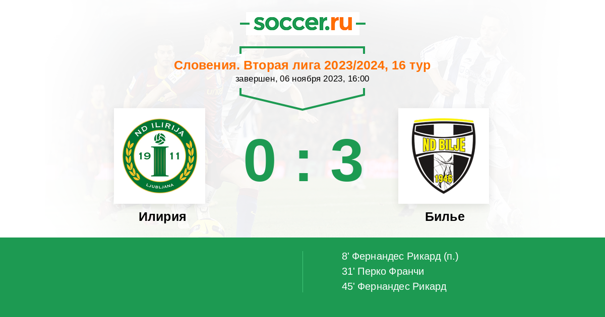 Илирия - Билье: обзор матча 6 ноября 2023
