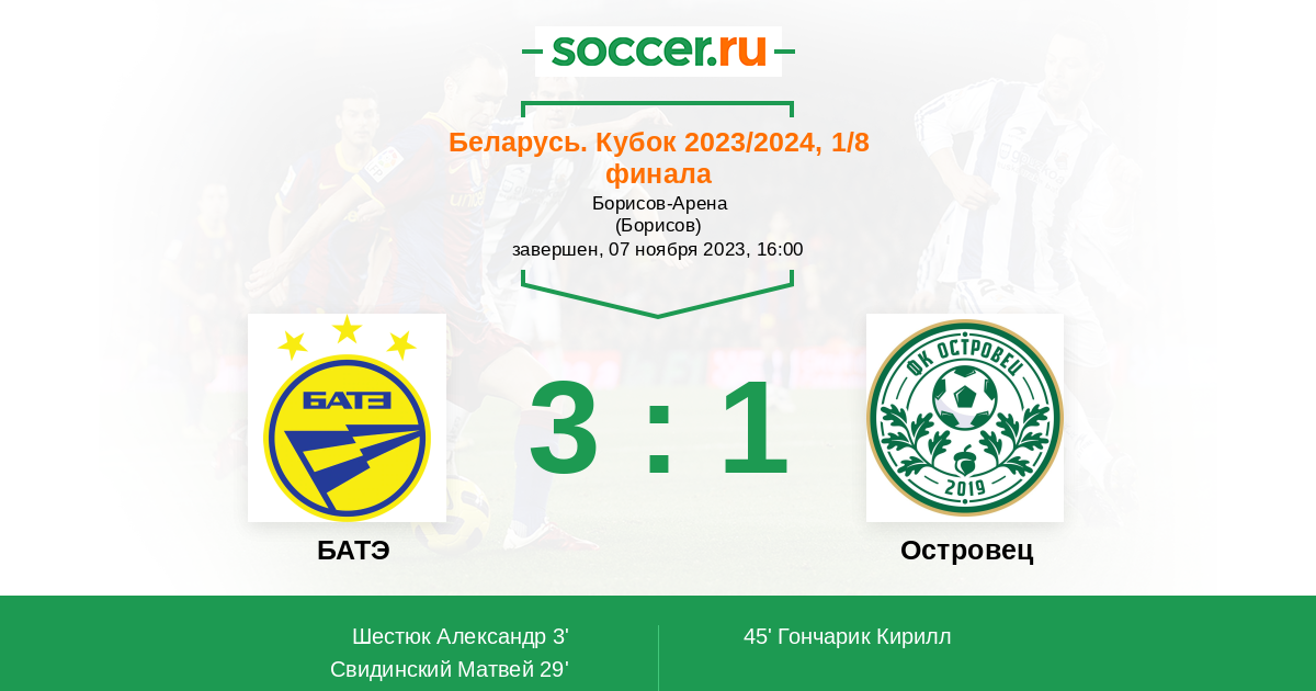 БАТЭ - Островец: обзор матча 7 ноября 2023