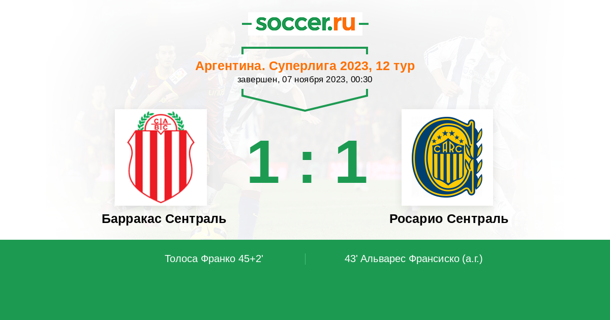 Барракас Сентраль - Росарио Сентраль: обзор матча 7 ноября 2023