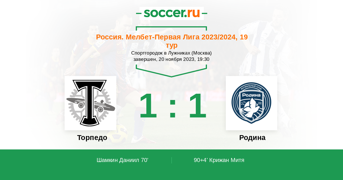 Торпедо - Родина: обзор матча 20 ноября 2023