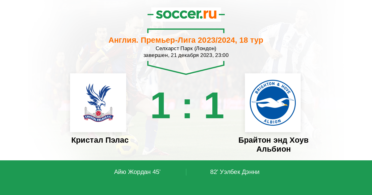 Кристал Пэлас - Брайтон энд Хоув Альбион: обзор матча 21 декабря 2023