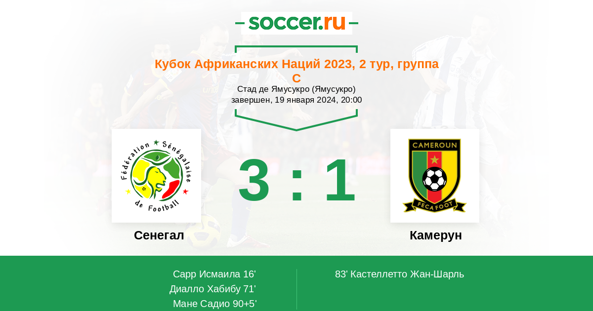 Сенегал - Камерун: обзор матча 19 января 2024
