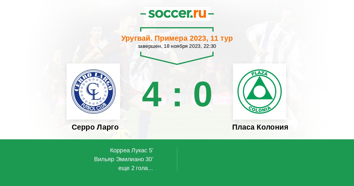 Серро Ларго - Пласа Колония: обзор матча 18 ноября 2023