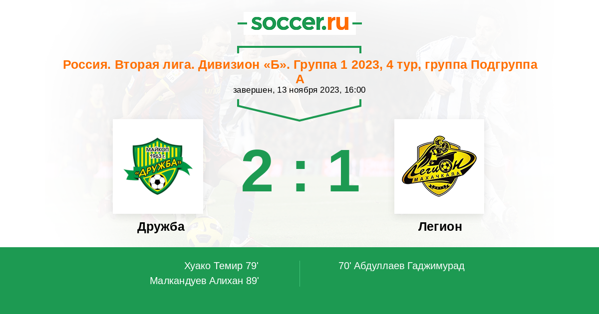 Дружба - Легион: обзор матча 13 ноября 2023