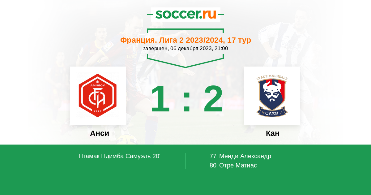 Анси - Кан: обзор матча 6 декабря 2023