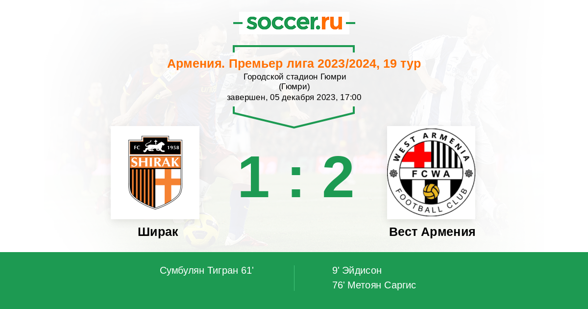Ширак - Вест Армения: обзор матча 5 декабря 2023
