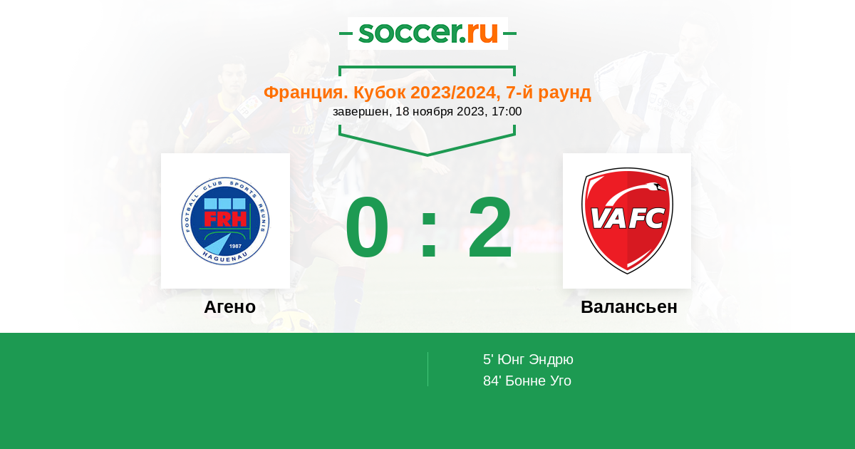 Агено - Валансьен: обзор матча 18 ноября 2023