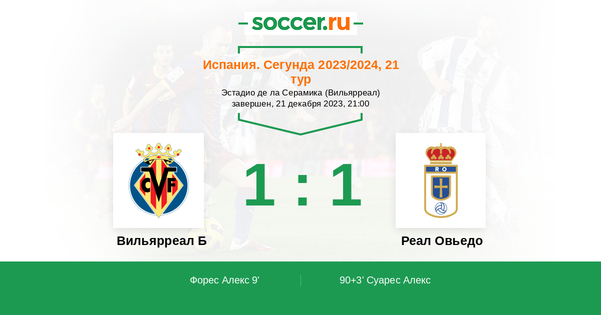 Вильярреал Б - Реал Овьедо: обзор матча 21 декабря 2023
