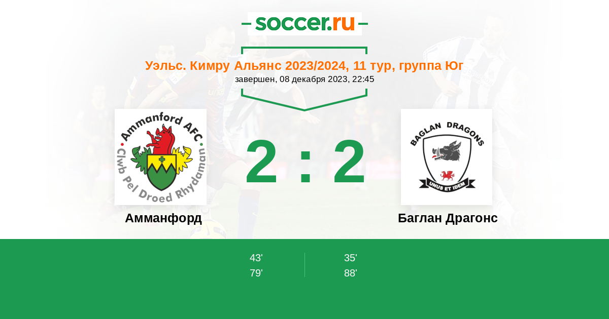 Амманфорд - Баглан Драгонс: обзор матча 8 декабря 2023