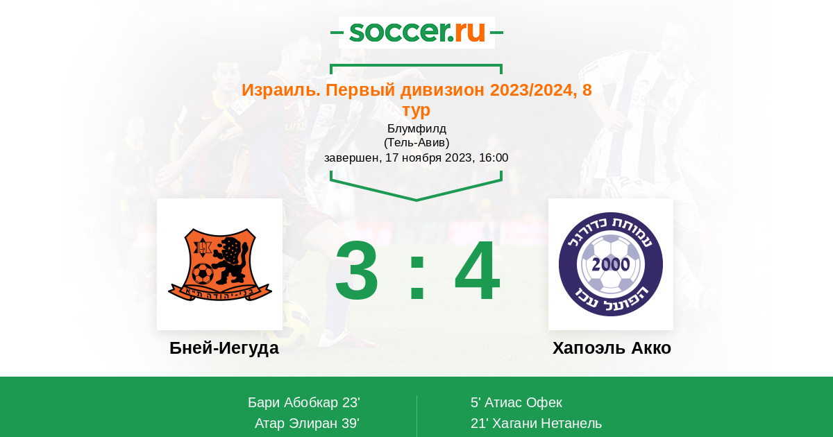 Бней-Иегуда - Хапоэль Акко: обзор матча 17 ноября 2023
