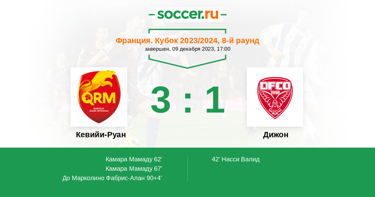 Кевийи-Руан - Дижон: обзор матча 9 декабря 2023