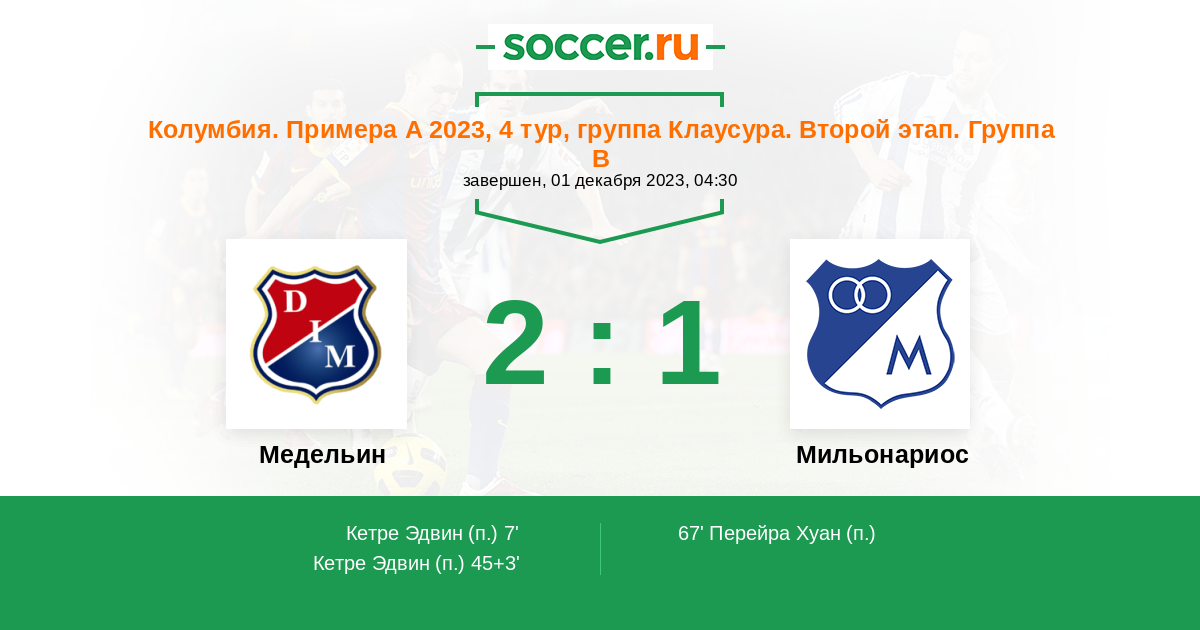 Медельин - Мильонариос: обзор матча 1 декабря 2023