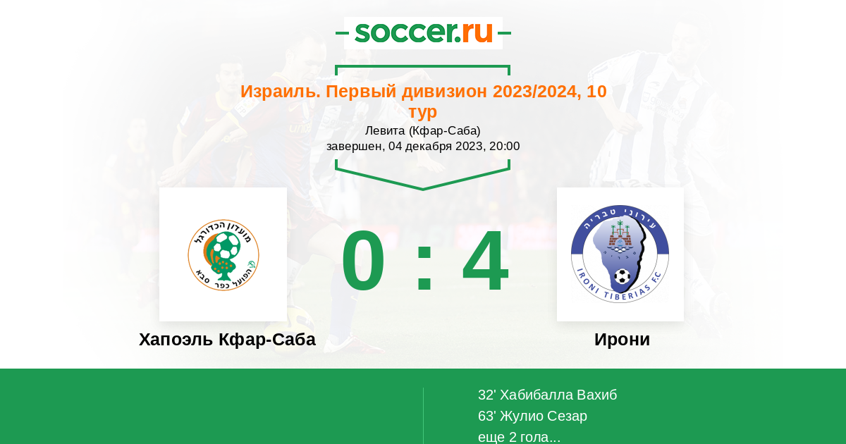 Хапоэль Кфар-Саба - Ирони: обзор матча 4 декабря 2023