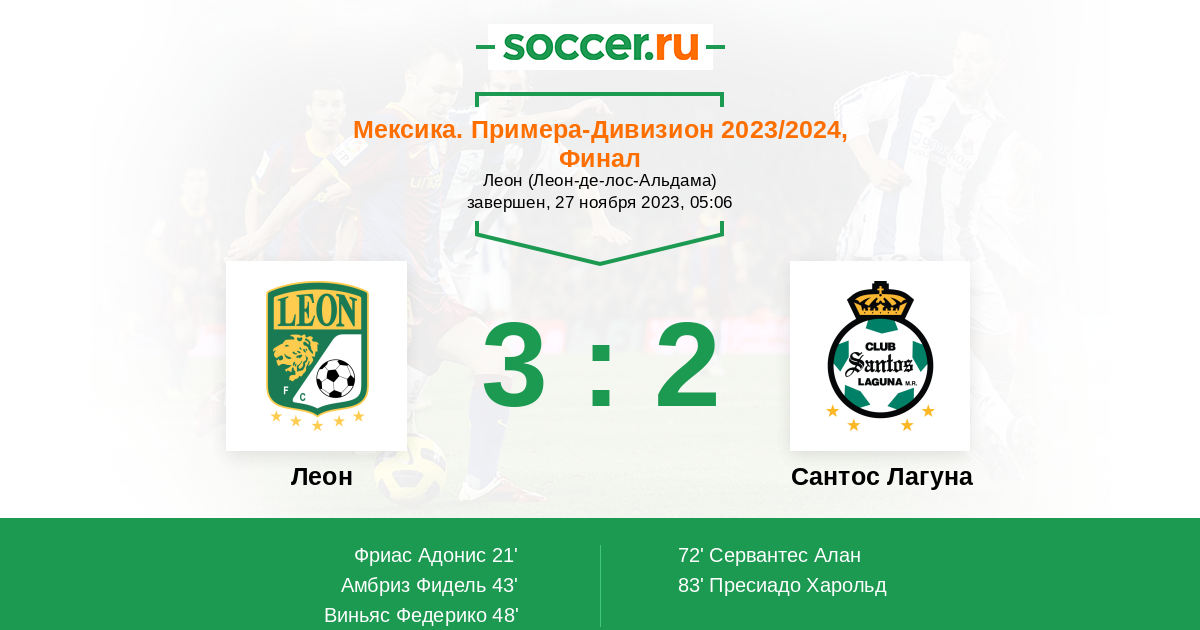 Леон - Сантос Лагуна: обзор матча 27 ноября 2023