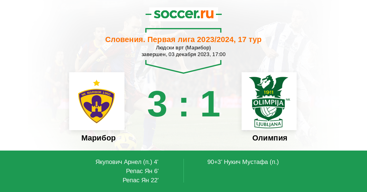 Марибор - Олимпия: обзор матча 3 декабря 2023