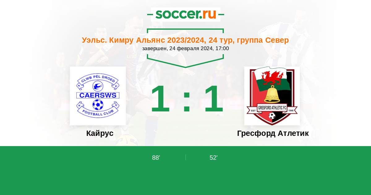 Кайрус - Гресфорд Атлетик: обзор матча 24 февраля 2024