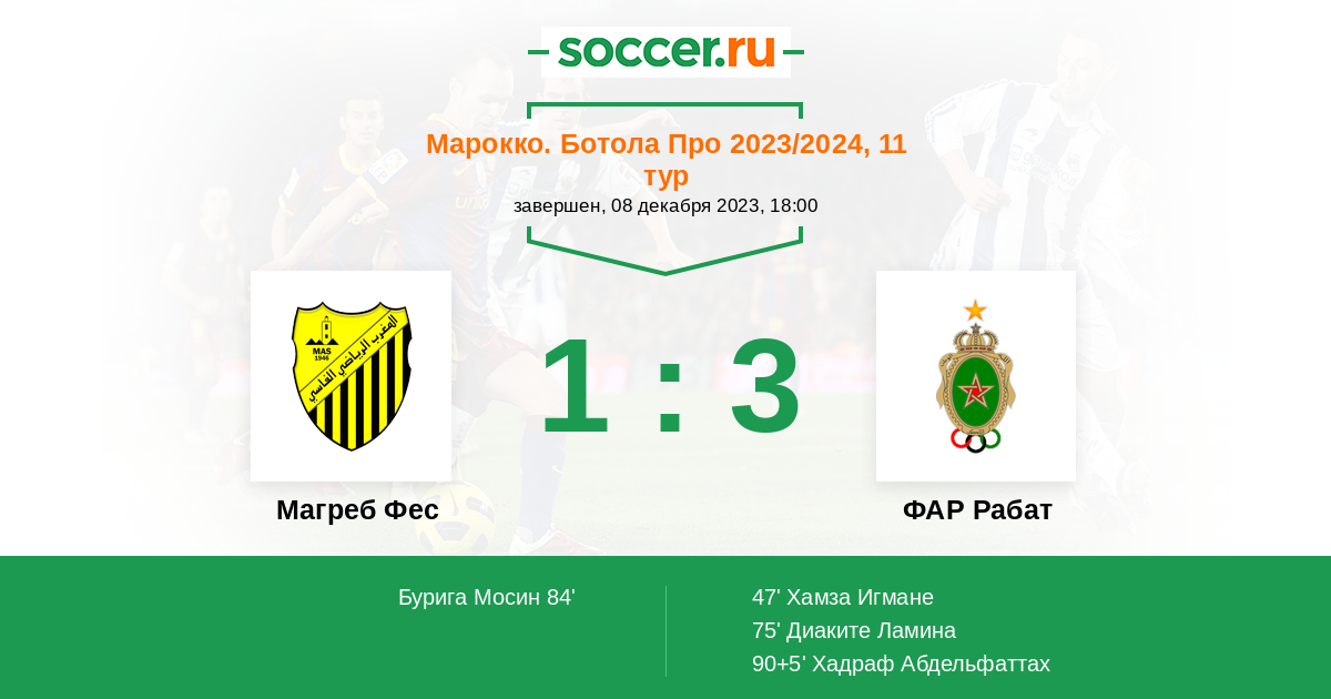 Магреб Фес - ФАР Рабат: обзор матча 8 декабря 2023