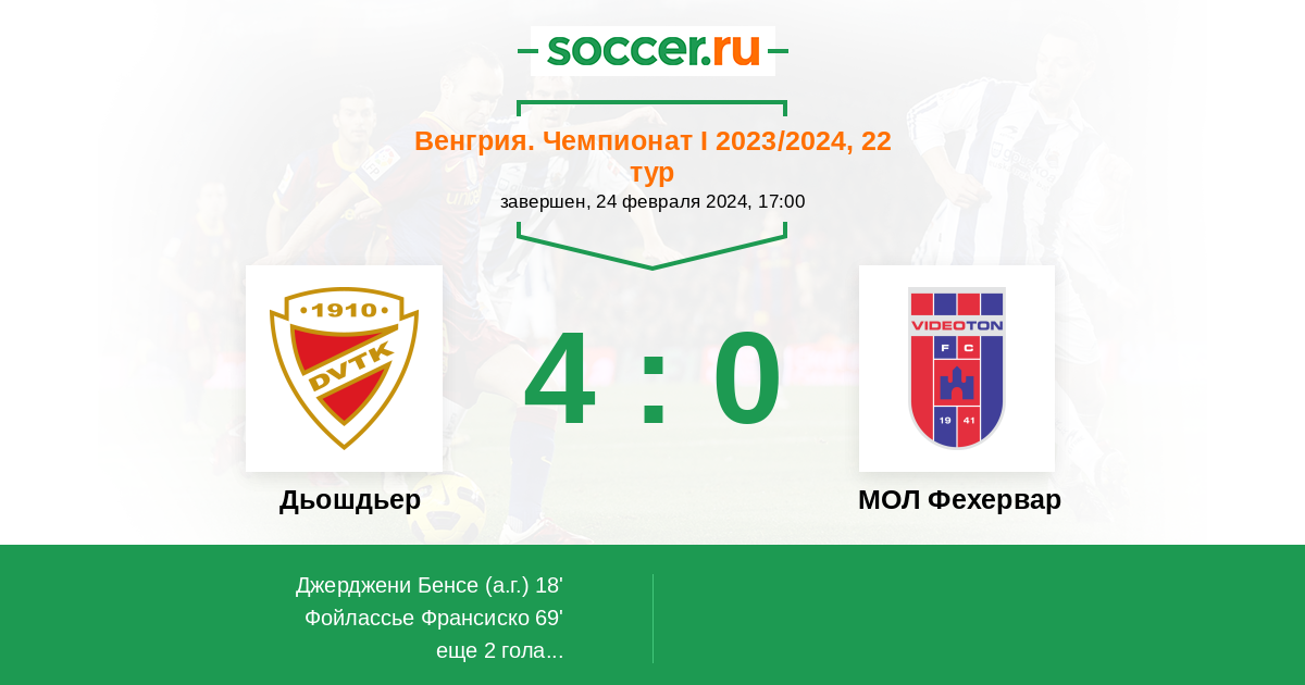 Дьошдьер - МОЛ Фехервар: обзор матча 24 февраля 2024