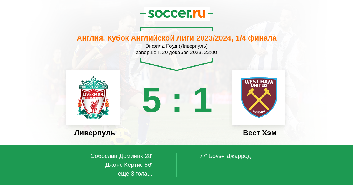 Ливерпуль - Вест Хэм: обзор матча 20 декабря 2023