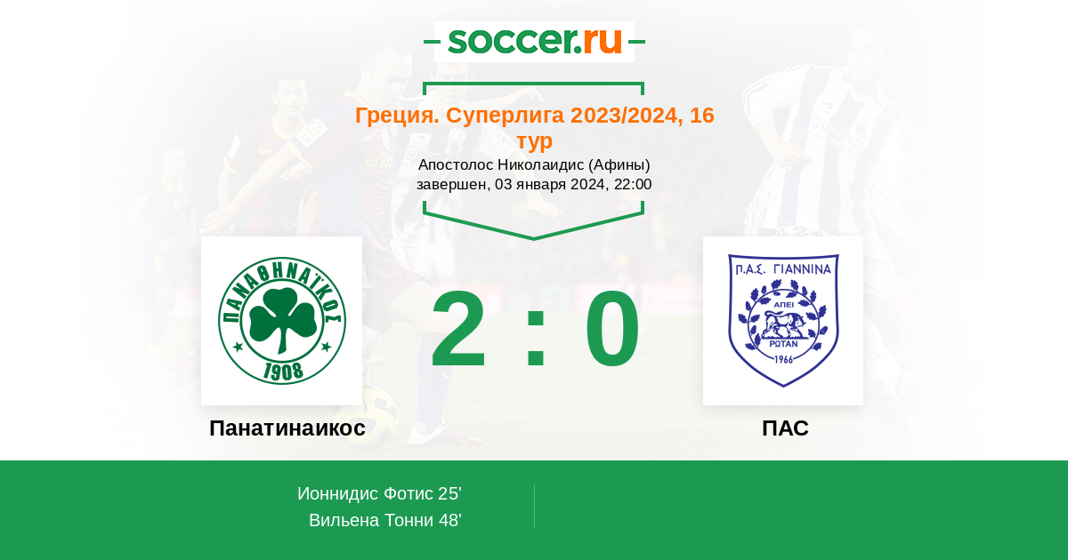 Панатинаикос - ПАС: обзор матча 3 января 2024