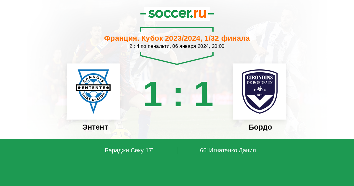 Энтент - Бордо: обзор матча 6 января 2024