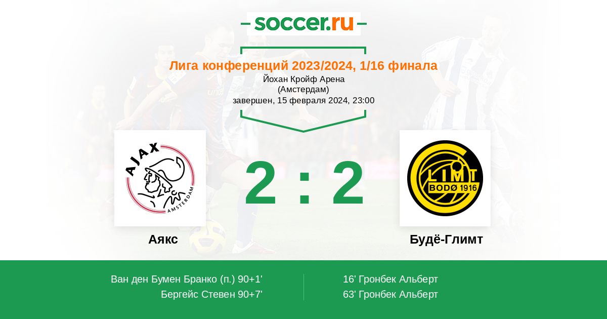 Аякс - Будё-Глимт: обзор матча 15 февраля 2024